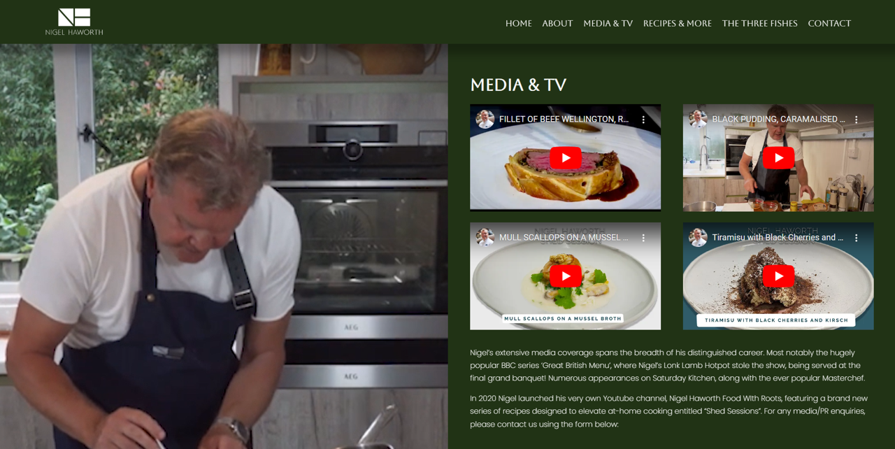 A familiar face on the small screen, Nigel has graced the kitchens of popular cooking shows, such as Saturday Kitchen, James Martin’s Saturday Morning and Sunday Brunch, showcasing his expertise and infectious passion for British cuisine.