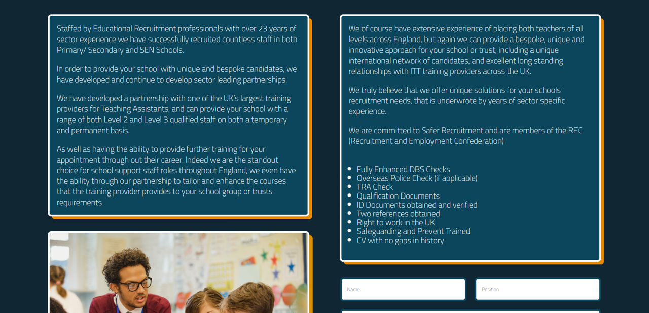 Vocational Recruitment is a specialist educational recruitment company, created by leading industry professionals boasting over 23 years of specialist sector knowledge.
